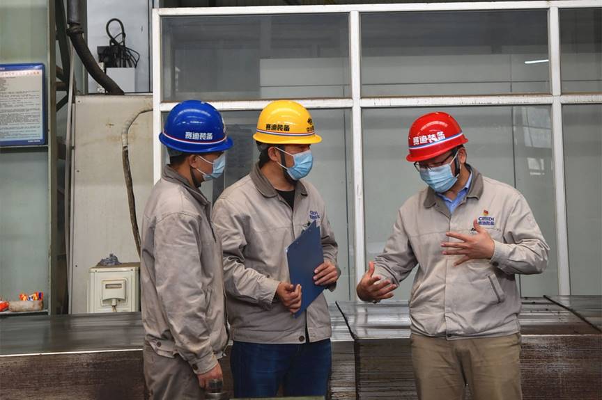 六安、盛隆連鑄項目黨員突擊隊由第三黨支部副書記、總裝車間主任廖靖擔任隊長,組員涵蓋設計、工藝、鉚焊、機加、裝配等專業(yè)。他們在做好本質工作的前提下,積極引導本部門員工響應公司號召,突顯攻堅克難精神。面對疫情所帶來的原材料回貨延期、多項目并行導致的工期緊張等方面的困難,突擊隊提前謀劃、統(tǒng)籌安排,有條不紊完成了前期的設計和工藝編排;生產攻堅期間恰逢端午節(jié),團隊放棄休假奮戰(zhàn)在各條戰(zhàn)線上,積極推進督促、充分溝通協(xié)調、加緊生產制造,各項工作有條不紊推進。