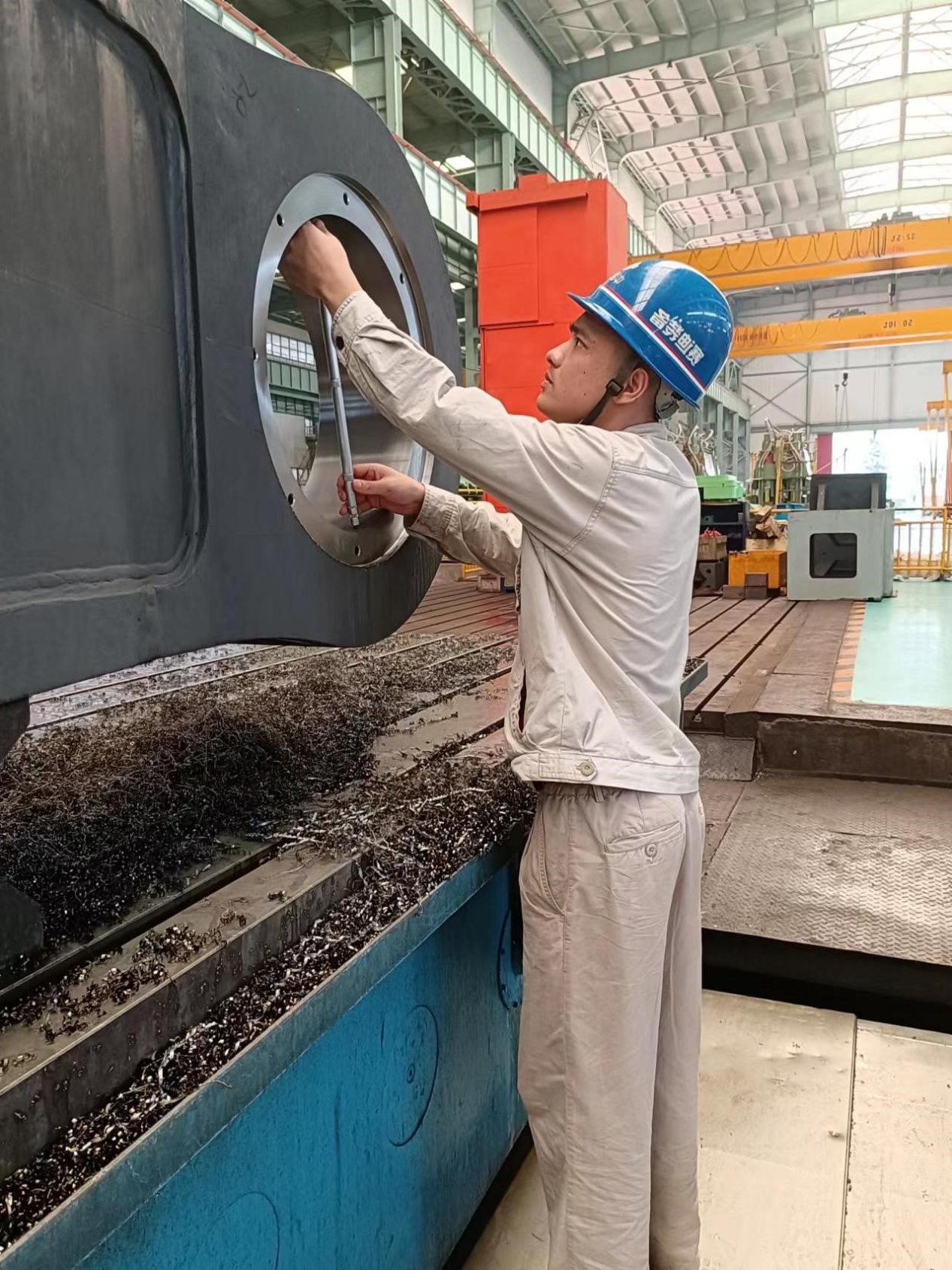 每年,制造車間都會迎來一大批客戶參觀。印象最深刻的一次是我剛完成零件自檢時,一位外國客戶走到我身邊,問道:“對面的成品是不是你加工的?尺寸是怎么保證的?這么大的設備都是一個人操作?”